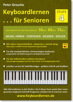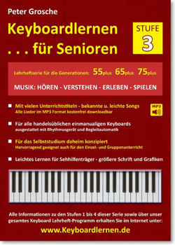 Im Gegensatz zu den anderen LMP Verlag Keyboardlehrheftserien wurde hier eine evtl. zeitweise eingeschränkte Mobilität der reiferen Generationen berücksichtigt und die Idee ausgerichtet auf ein mögliches Selbststudium daheim.